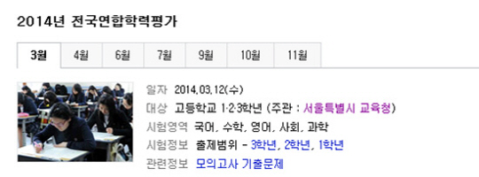12일 전국의 고등학생(전학년) 132만명이 2014학년도 전국연합학력평가를 치른다. 3월 모의고사라고도 불리는 이번 시험은 전국 모든 고등학생이 응시하게 된다.