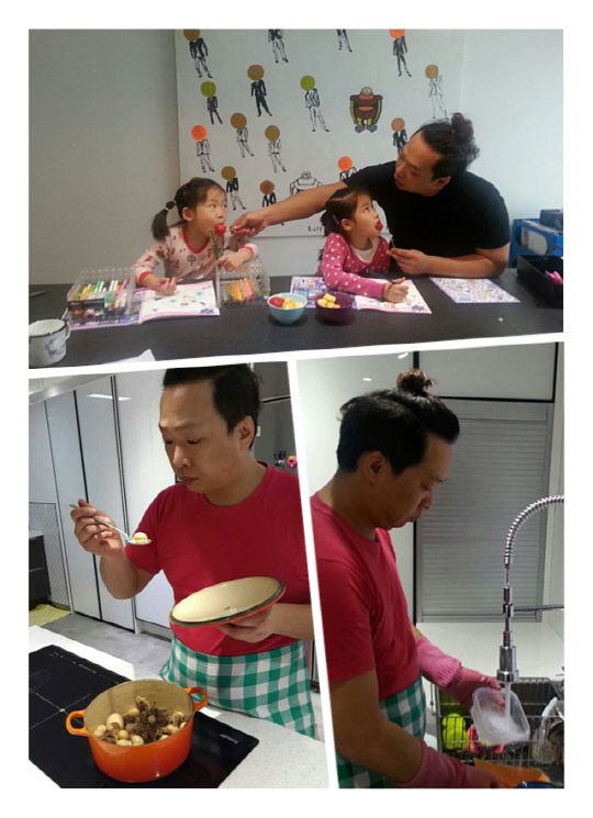 이 사진은 개그맨 박준형과 개그우먼 김지혜 부부가 한경희생활과학의 공식 페이스북(www.facebook.com/haankorea)을 통해 직접 공개한 것으로 "요리도 척척, 설거지도 척척!!아무리 피곤해도 주니&혜이와 신나게 놀아주는 멋진 아빠, 멋진 남편♡ 여러분~ 저희 남편 멋있죠? 주니&혜이 아빠 사랑해요"라는 글과 함께 남겼다.