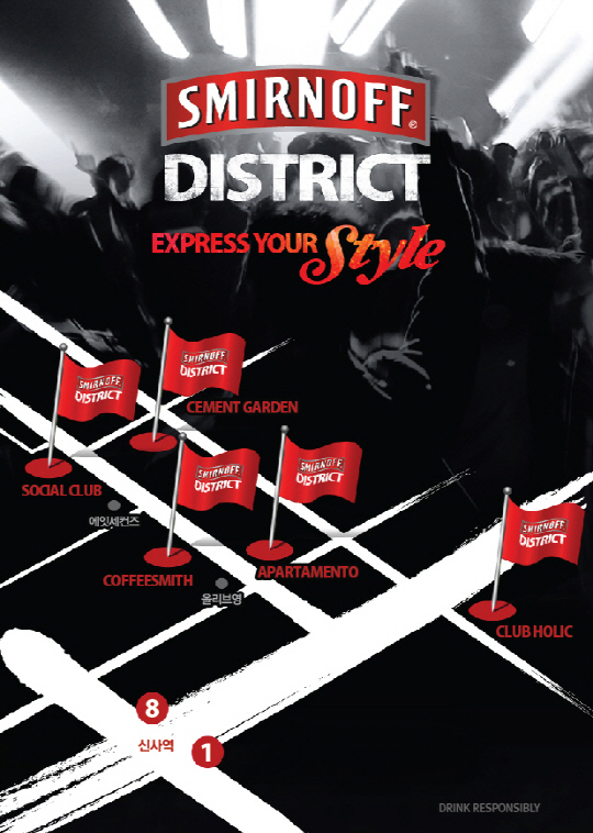 보드카 브랜드 스미노프가 14일 서울 신사동 가로수길에서 '스미노프 디스트릭트(Smirnoff District) 캠페인'피날레 행사를 진행한다고 밝혔다.