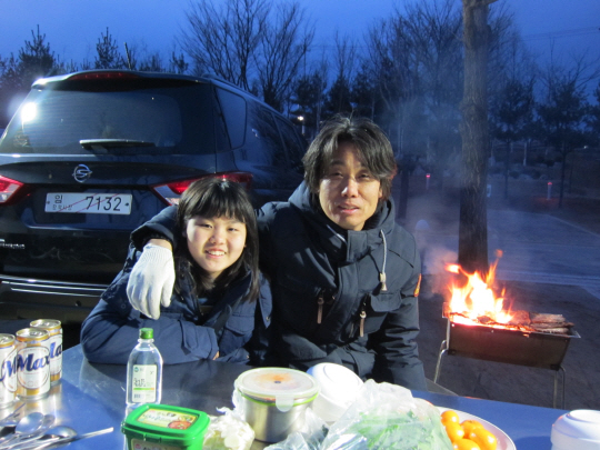 캠핑장에서 딸 다원이와 함께 포즈를 취한 강석현씨. 평소 일에 쫓겨 아이들과 많은 시간을 함께 보내지 못해 안타까웠다는 강씨는 이번에 투리스모를 타고 캠핑장 나들이를 했다.