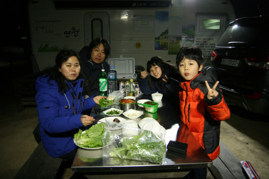 해는 저물고 갬핑장의 하루는 끝나가지만, 모처럼 가족이 함께한 식탁엔 여유와 웃음이 넘쳐났다.