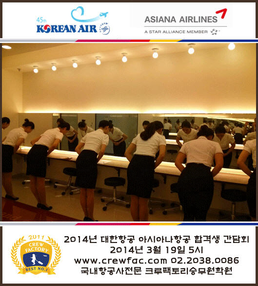이번 대한항공CEO면접과 아시아나항공 임원면접 합격자들이 많은 이유도 크루팩토리 스튜어디스학원 승무원전문 5star강사의 역할이 가장 크다. 이번 합격자들은 최종 신체검사만을 앞두고 있으며 신입 입과 전 이제부터 준비하는 차기 승무원들을 위해 준비방법과 합격 비법에 관한 합격생 간담회를 갖는다고 한다.