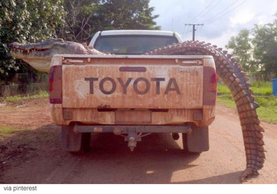 공개된 사진에는 소형 트럭의 짐칸에 '거대 악어'가 실려 있다. 특히 악어의 엄청난 크기가 눈에 띈다. 악어의 거대한 머리는 짐칸 밖으로 튀어나왔고, 꼬리는 바닥에 질질 끌릴 정도다.