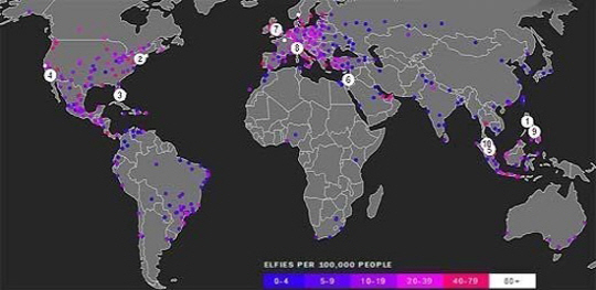 최근 미 시사주간지 타임(TIME)측은 한 소셜네트워크 사이트의 데이터베이스를 분석해 얻은 세계 셀카 찍기 도시 순위를 공개했다.