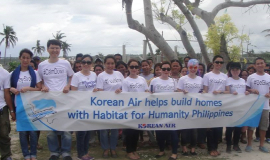 대한항공이 필리핀 태풍 피해 마을 지원에 나섰다. 대한항공에 따르면 15일 필리핀 세부 북부 단반타얀 지역을 찾아 주택을 복구하는 봉사활동을 진행했다. 단반타얀은 지난해 11월 태풍 하이옌으로 피해를 입은 세부 북부 지역이다.