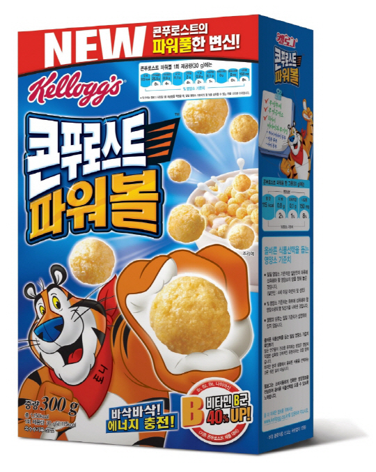농심 켈로그가 균형잡힌 영양소에 비타민B군을 40% 증가시킨 '콘푸로스트 파워볼'을 출시했다.