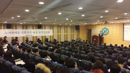 대한항공이 16일 오전 서울 강서구 공항동 본사 빌딩에서 수험생 자녀를 둔 임직원 가족을 대상으로 '노사한마음' 대학입시 설명회를 개최했다.