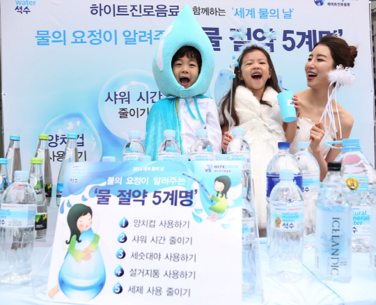 하이트진로음료는 17일 오전 광화문 일민미술관 앞에서 '세계 물의 날'을 알리기 위한 '물의 요정이 알려주는 물 절약 5계명' 캠페인을 실시했다.