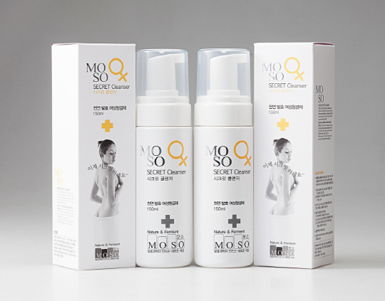 '모소(MOSO) 여성청결제 시크릿 클렌저'는 천연계면활성제, 나무딸기의 일종인 보이젠베리, 효모 감즙발효 추출물, 쑥 추출물, 녹차 추출물, 올리브 오일, 스쿠알란 오일, 자몽 오일 등의 성분이 함유돼 민감하고 예민한 피부에 보습효과와 탄력, 매끄러움을 제공한다.