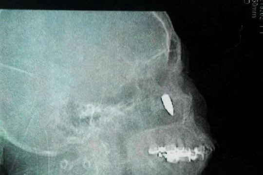 의료진은 여성의 코 안쪽 부분을 절개해 총알을 제거하는 수술을 했다.
