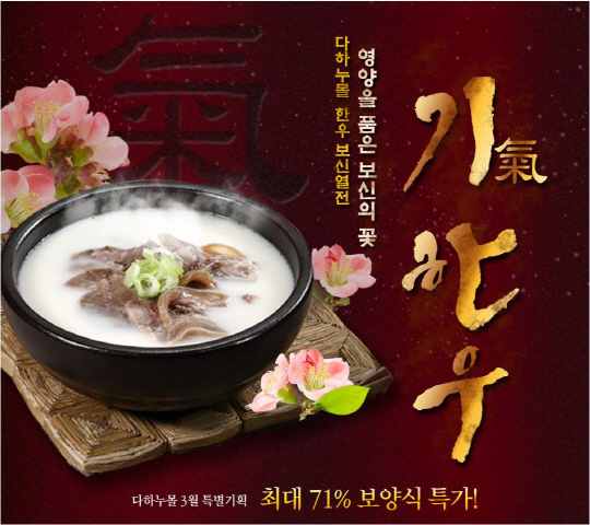 한우전문쇼핑몰 다하누몰(www.dahanoomall.com, 대표 최계경)에서는 새봄의 시작과 함께 원기회복에 탁월한 다하누의 몸보신 상품을 파격가에 만나볼 수 있는 '보양식 열전' 특가 행사를 준비했다.