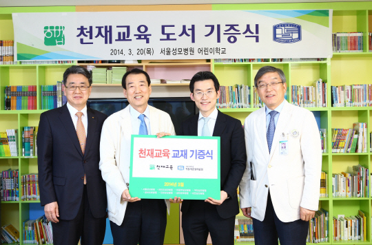 기증식은 서울성모병원 20층 어린이학교에서 천재교육 최정민 전무, 강무일 가톨릭중앙의료원장, 서울성모병원 승기배 병원장, 김학기 어린이학교장 등이 참석한 가운데 진행됐다. 천재교육은 병원 내 환아들이 꾸준히 학습에 집중하고 다양한 도서를 접할 기회를 제공하고자는 취지에서 나눔활동을 전개했다. 도서는 유아동 및 초·중·고 교재 총 1300여 권으로 8개 병원 소아병동 및 도서관 등에 비치해 입원 환아들이 손쉽게 도서를 접할 수 있도록 했다.