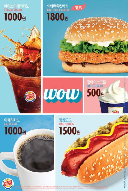버거킹 마케팅팀 관계자는 "다시 선보이는 'WOW 시리즈'는 새 학기와 야외 활동, 나들이가 많아지는 봄을 맞이하여 간편하고 알차게 즐길 수 있도록 기획되었다."며 "새롭게 추가된 '바베큐치킨버거'와 아이스크림 등 스낵부터 디저트까지 버거킹의 다양한 메뉴와 맛을 기분좋게 즐기시길 바란다."고 밝혔다.