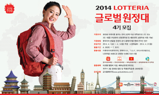 롯데리아가 4월 1일부터 14일까지 대학생을 대상으로 '롯데리아 글로벌 원정대 4기'를 모집한다.