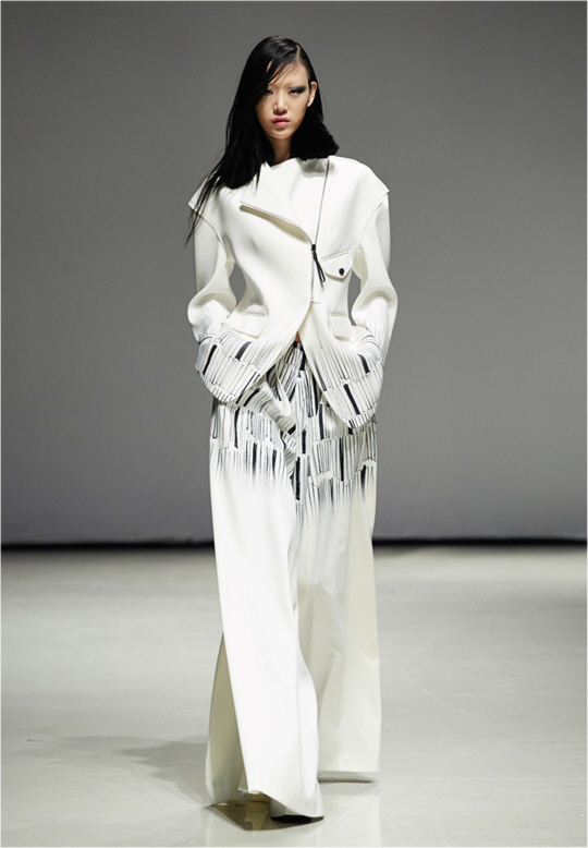전체적으로 이번 패션위크에서 이석태는 모던 컨템포러리 디자이너로서 실루엣을 중요하게 여기는 정신을 잘 반영했다는 호평을 받았다. 전상희 기자 nowater@sportschosun.com