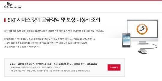 25일 오후 6시부터 SKT는 지난 20일 발생한 통신장애에 관한 보상 금액을 간편하게 확인할 수 있는 별도의 조회시스템(https://cs.sktelecom.com)을 열었다.