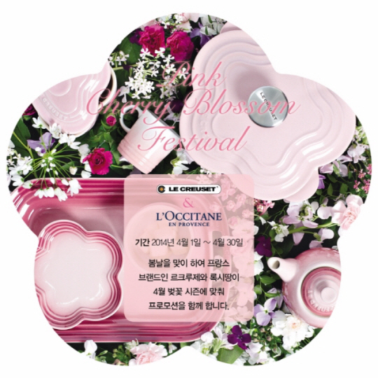 '핑크 체리 블로썸 프로모션'은 감각적인 색감으로 사랑 받는 주방용품 브랜드 르크루제의 봄에 잘 어울리는 핑크라인 제품 6종 출시를 기념해 기획됐다. 프랑스 화장품 브랜드 록시땅 역시 베스트셀러인 체리블라썸 라인의 큰 인기도 이번 이벤트를 같이 하게 된 배경이다. 이번 프로모션은 4월 1일부터 30일까지 한 달 간 전국 49개 백화점에서 진행된다.