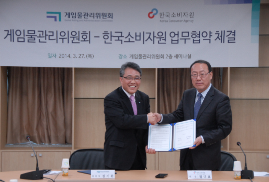 한국소비자원과 게임물관리위원회가 게임분야 정보 교류 및 협력 사업 추진을 위해 상호협력 양해각서(MOU)를 체결했다.