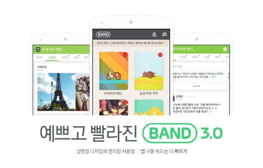 2천700만의 '밴드(BAND)'가 3.0 버전으로 판올림 됐다.