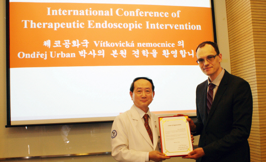 체코 치료내시경 분야 최고 권위자인 온드르제이우르반 박사가 28일 서울시 관악구 에이치플러스 양지병원(이사장 김철수)을 방문 견학하고, 병원 9층 세미나실에서 마련된 '에이치플러스 양지병원 소화기 국제심포지움' 에 참석했다.