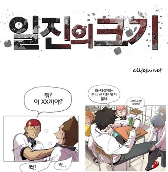 일진의 크기'는 등장인물인 일진의 키가 줄어들다가 다시 자라며 왕따 학생을 지켜주는 '착한 일진'으로 바뀐다는 설정으로 일진 미화 논란에 휩싸인 바 있다.