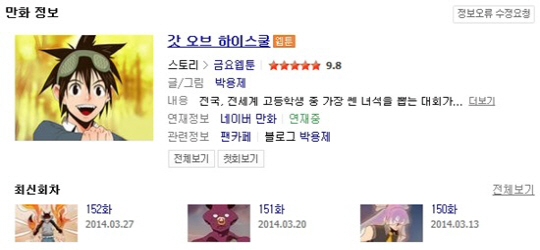 이번주에 공개되는 편은 152화로 전세계 고등학생 중 가장 막강한 힘을 가진 자를 가리는 대회를 다룬 내용이 담겼다.