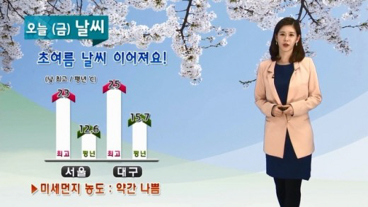 서울은 23도까지 올라서 평년보다 10도정도 높은 기온이다. 대구는 낮 최고기온 25도로 한낮에는 약간 덥게도 느껴지겠다.