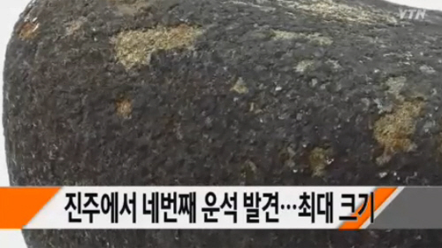 28일 경상대학교 지구환경과학과 좌용주 교수는 지난 17일 오전 10시 10분께 진주시 집현면 덕오리 한 도로변 작은 개울에서 발견된 운석으로 추정되는 돌을 감정한 결과 최근 진주에서 발견된 운석 3개와 같은 종류인 것으로 확인했다고 밝혔다.