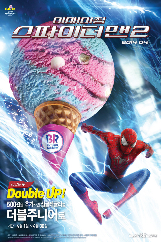 배스킨라빈스가 영화 '어메이징 스파이더맨2' 개봉을 기념해 4월 이달의 맛으로 스파이더맨을 컨셉트로 한 신제품 '어메이징 스파이더맨2'를 출시했다.