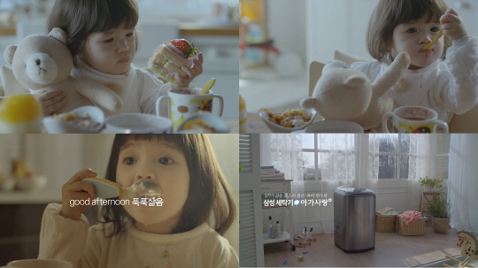 최근 삼성 세탁기 아가사랑 플러스가 공개한 두 편의 광고 영상 속에서는 보호본능을 일으키는 귀여운 여자 아기가 커다란 조각의 딸기 케이크와 이유식 등을 맛있게 먹는 모습이 눈길을 끈다.