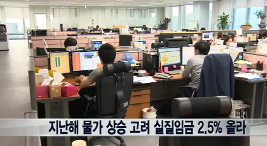 지난해 실질 임금 상승률이 2.5%에 그친 것으로 조사됐다.