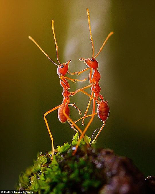공개된 사진 속에서 빨간색을 띄고 있는 두 마리의 불개미가 몸과 더듬이를 곧추 세운 채 손을 맞잡고 춤을 추는 듯 한 모습을 연출하고 있어 많은 이들의 시선을 집중시켰다.