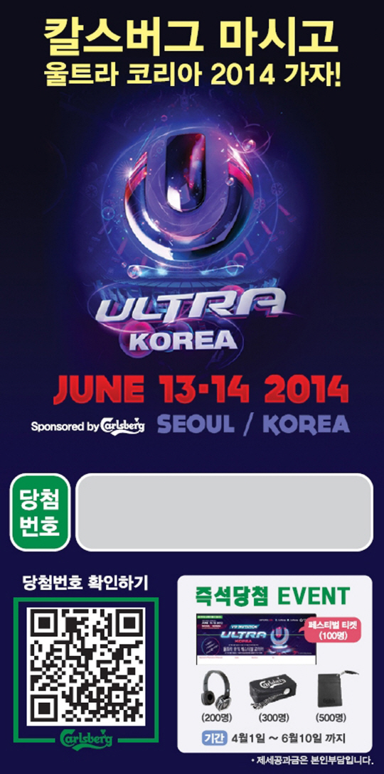 칼스버그(Carlsberg)가 오늘부터 오는 6월 10일까지 '울트라 코리아 2014' 의 뜨거운 열기를 느끼려는 젊은 소비자들을 위한 초청 이벤트를 진행한다.