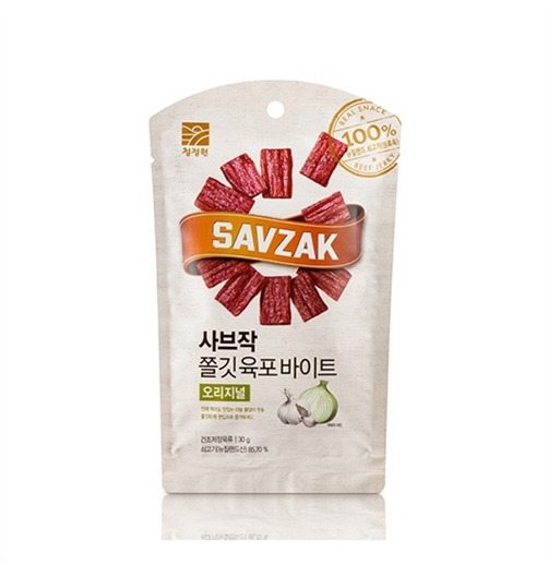 청정원 '사브작 쫄깃 육포 바이트'는'오리지널'과 '달콤숙성' 두 가지 맛으로 출시되어, 입맛에 따라 선택이 가능하다. '오리지널'은 한국인이 가장 선호하는 불갈비맛을 베이스로 한 제품으로, 마늘과 양파를 가미해 짭조름한 맛이 일품이고, '달콤숙성'은 달콤한 배와 새콤한 매실액으로 숙성해 부드러우면서도 담백한 맛을 살렸다.