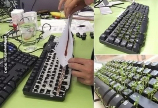 1위는 키보드를 채소밭으로 만드는 장난이 뽑혔다. 사진 속에는 한 남성이 자신의 동료 책상에 있는 키보드를 분해, 휴지 등을 깔아 물이 새는 것을 방지한 뒤 씨앗을 뿌려 새싹이 자라나게 했다.