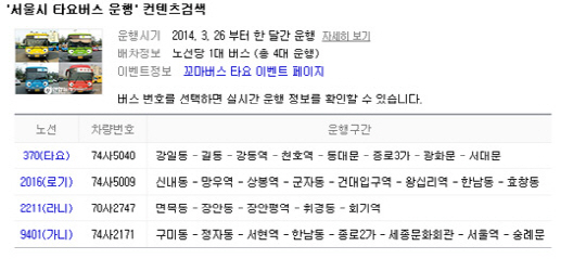 지난달 28일 포털 다음커뮤니케이션은 서울시 버스운송사업조합과 아이코닉스가 운행하는 '타요버스'의 실시간 위치 정보와 운행 노선을 다음 지도를 통해 공개했다.