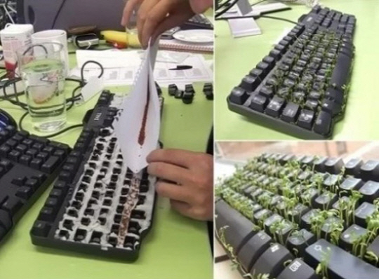 1위는 키보드를 채소밭으로 만드는 장난이 뽑혔다. 사진 속에는 한 남성이 자신의 동료 책상에 있는 키보드를 분해, 휴지 등을 깔아 물이 새는 것을 방지한 뒤 씨앗을 뿌려 새싹이 자라나게 했다.