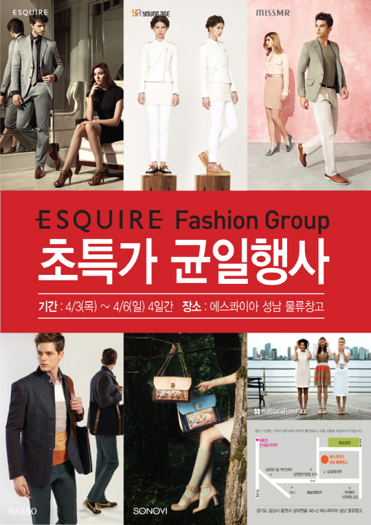한편, 에스콰이아는 본 행사와 동시에 전국 에스콰이아 매장에서 오는 4월 20일까지 신상품을 포함한 전품목을 최대 20%까지 할인된 가격에 제공하는 봄 정기 행사를 진행 중이다.