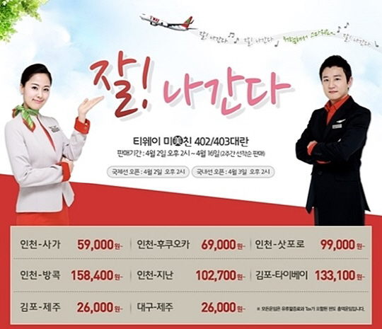 티웨이항공 홈페이지에서 선착순으로 판매된다.