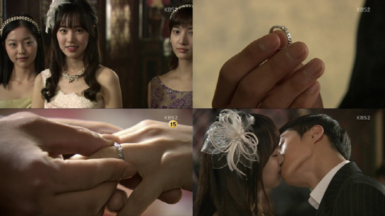 정태가 옥련에게 많은 사람들 앞에서 용기 있게 사랑을 고백하며 프로포즈 반지를 선물한 장면이다. 화제가 된 정태와 옥련의 언약식 속 백년가약 프로포즈 반지는 정태의 한결같은 사랑을 표현하고자 반지 테두리 전체에 걸쳐 골드 그레뉼을 일정한 간격으로 접합하였고 시간이 지나지 않아도 변하지 않는 사랑을 염원하며 클래식한 세공 기법인 누금세공기법을 선택해 디자인을 구현한 것이다. 중심석은 과하지 않으면서도 혼례의 느낌을 살리고자 최상급의 1부 다이아몬드를 선별하여 세팅한 반지이다. 이 프로포즈 반지는 정교한 누금세공기법으로 완성된 작품으로 클로즈업된 화면에서도 섬세한 입체감을 뽐내 황홀하고 로맨틱한 분위기를 연출했다.
