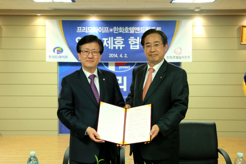 프리드라이프(회장 박헌준)가 한화호텔앤드리조트와 업무제휴 협약(MOU)을 맺었다. 협약을 통해 프리드라이프는 가입 고객에게 한화호텔앤드리조트의 리조트 객실과 부대시설의 이용 및 할인 혜택을 제공할 수 있게 됐다. 한화호텔앤드리조트와의 업무제휴를 통해 라이프 토탈 서비스 시장에서 트렌드를 선도하며, 더욱 강화된 고객 서비스를 제공할 계획이다. 박용덕 프리드라이프 박용덕 대표이사는 "다양한 인프라 구축을 통해 신개념 라이프 서비스를 선보이며, 고객 서비스를 강화해 나갈 것"이라고 말했다. 프리드라이프는 2002년 상조서비스를 시작, 2013년 공정거래위원회 발표 3년 연속 자산총액, 선수금 규모 1위를 달성한 바 있다.