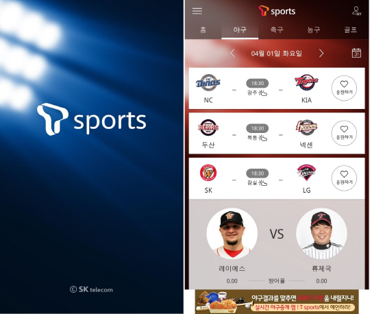 SK텔레콤 관계자는 "'T스포츠' 앱을 통해 국민스포츠로 자리잡은 야구 중계뿐 아니라 두터운 팬층을 확보하고 있는 농구, 축구, 골프 등의 박진감 넘치는 경기들을 모바일로 생생하게 시청할 수 있도록 안정적인 플랫폼 구축에 최선을 다할 것"이라고 말했다.