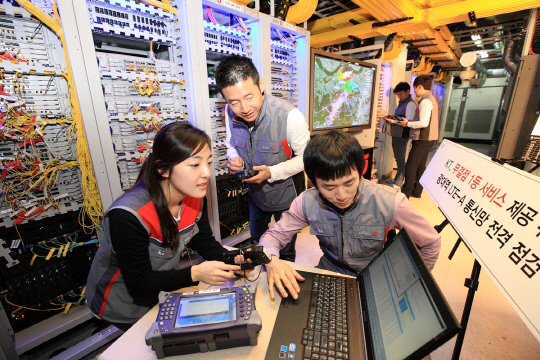 KT(회장 황창규)가 3일 전국에 걸쳐 광대역 LTE-A 통신망을 일제 정비하고 주요 지역 이동기지국 설치와 함께 자원 증설을 추진함으로써 본격적인 품질 점검에 나선다. KT 관계자는 "고객을 최우선으로 하는 1등 광대역 LTE-A 품질을 제공하기 위해 최선을 다할 것"이라고 말했다.
