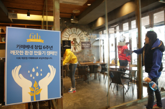 '깨끗한 환경 만들기' 캠페인은 카페베네 임직원들이 모두 참여해 전국 카페베네 매장과 주변 지역을 청소하는 행사다.
