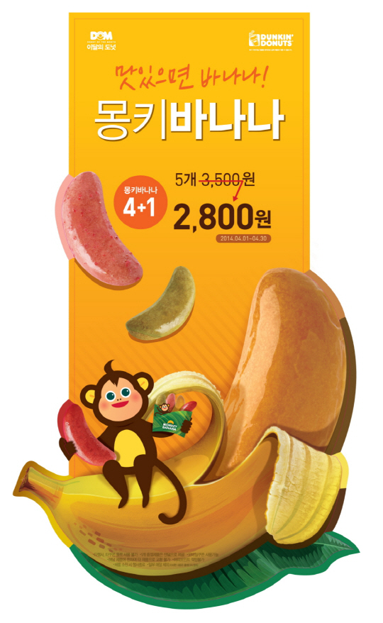 던킨도너츠 관계자는 "봄을 맞아 야외활동 시에 즐기기 좋은 몽키바나나와 과일의 상큼함을 가득담은 음료를 새롭게 출시하게 됐다"며 "성큼 다가온 봄에 앙증맞은 사이즈의 몽키바나나 도넛과 풍부한 과육이 함유된 과일 음료로 행복한 봄을 맞이하길 바란다"고 전했다.