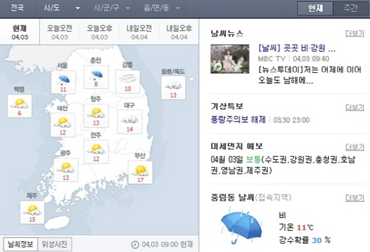 오늘 날씨, 아침에 우산을 챙겨 나왔는데 다행이네", "
