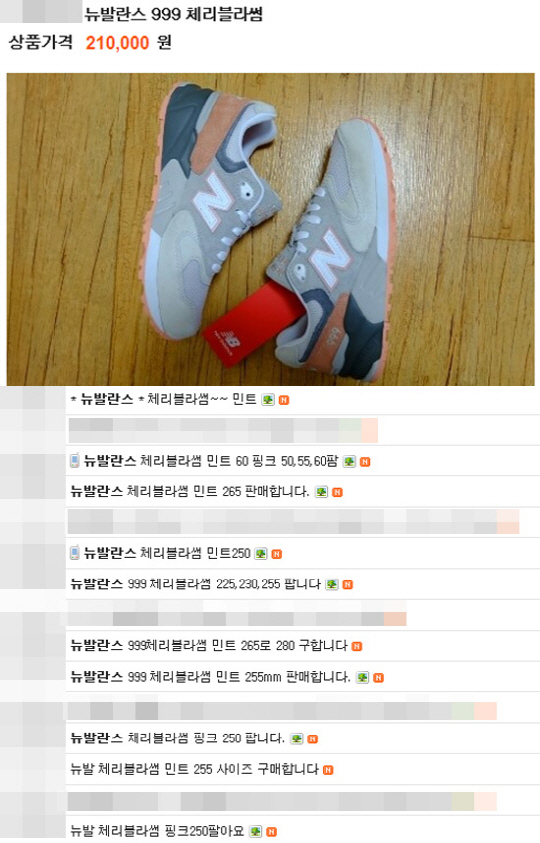 문제는 매장에서 판매되는 기존 가격보다 높은 가격대가 형성돼 있다는 것. 뉴발란스 체리블라썸의 오프라인 매장 및 온라인 스토어 가격은 15만 9000원이다. 하지만 해당 카페에는 최소 19만 원에서 21만 원선까지 가격으로 판매하고 있는 네티즌들이 대부분이다.