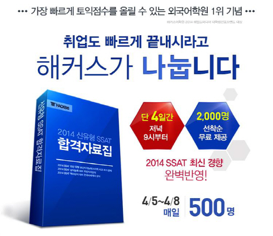 해커스 챔프스터디 당담자는 "삼성 채용에 대한 취업준비생의 취업 열기가 뜨거운 만큼 취업준비생을 위해서 SSAT 합격자료집을 무료로 제공하는 이벤트를 마련했다"며 "시험까지 얼마 남지 않았지만, 단기간에 시험의 흐름을 파악할 수 있도록 도움이 될 만한 핵심내용으로 구성했기 때문에 삼성 취업을 목표로 하는 학생들에게 유용한 자료집이 될 것"이라고 말했다.