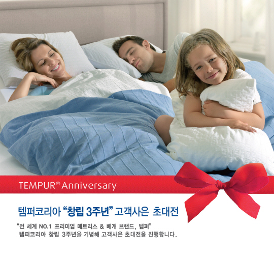 세계 1위의 프리미엄 매트리스, 베개 브랜드 템퍼(www.tempur.com)가 템퍼코리아 창립 3주년을 기념해 '고객 사은 초대전'을 진행한다.