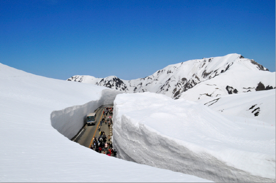 매년 11월말부터 4월초까지 통행을 제한한 후 제설작업으로 설벽을 개통하는 다테야마 알펜루트는 눈이 많이 오는 지역의 설벽 구간을 '눈의 계곡'이라고도 한다. 올해는 4월 16일~6월 22일(예정)까지 개통될 예정이라 2개월 동안만 설벽의 장관을 느낄 수 있다.